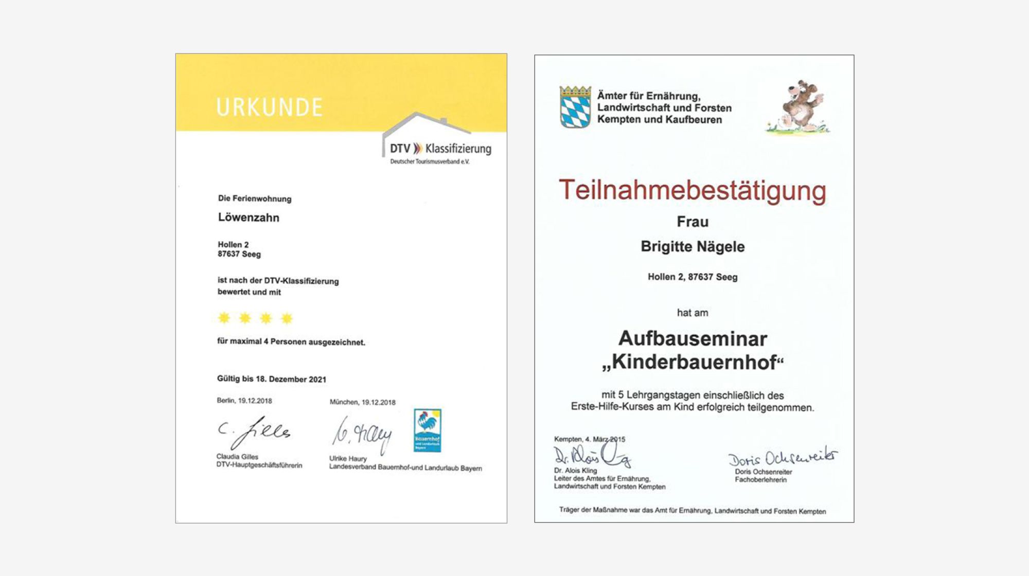 Für unsere verschiedenen Auszeichnungen und Qualitätssiegel ist bester Service selbstverständlich. Daher nehmen wir als Gastgeber regelmäßig an Seminaren und Fortbildungen teil, um Ihnen einen schönen Urlaub auf unserem Bauernhof zu bieten. Zentrales Thema sind dabei immer auch Kinder. Denn ihre glücklichen Augen sind alle unsere Mühen wert.