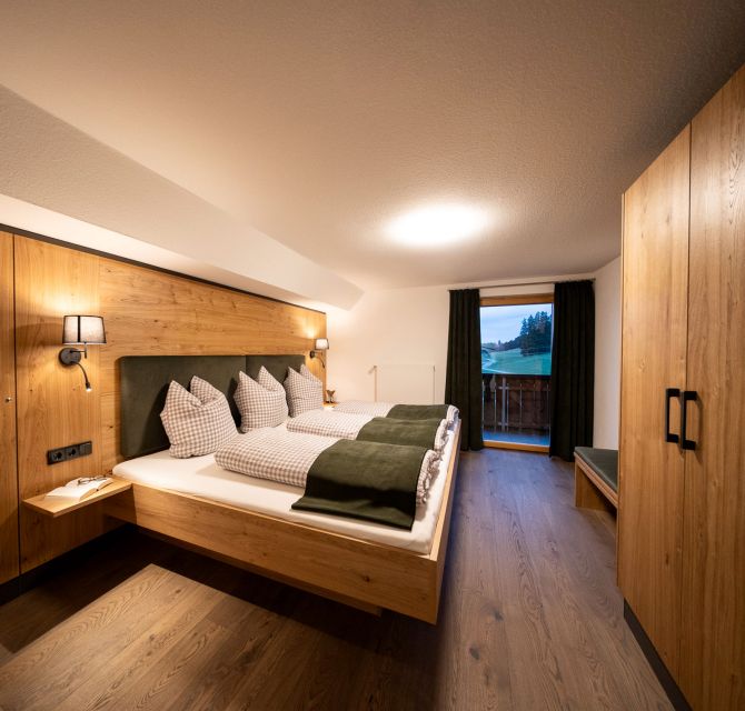 Freue Dich auf eine großzügige Unterkunft mit traumhaftem Ausblick, drei separaten Schlafzimmern – darunter eines mit einem großzügigen Familienbett für bis zu drei Personen – zwei Bädern, einem großen Ostbalkon mit tollem Weitblick und als besonderes Highlight eine eigene Sauna sowie eine Badewanne!